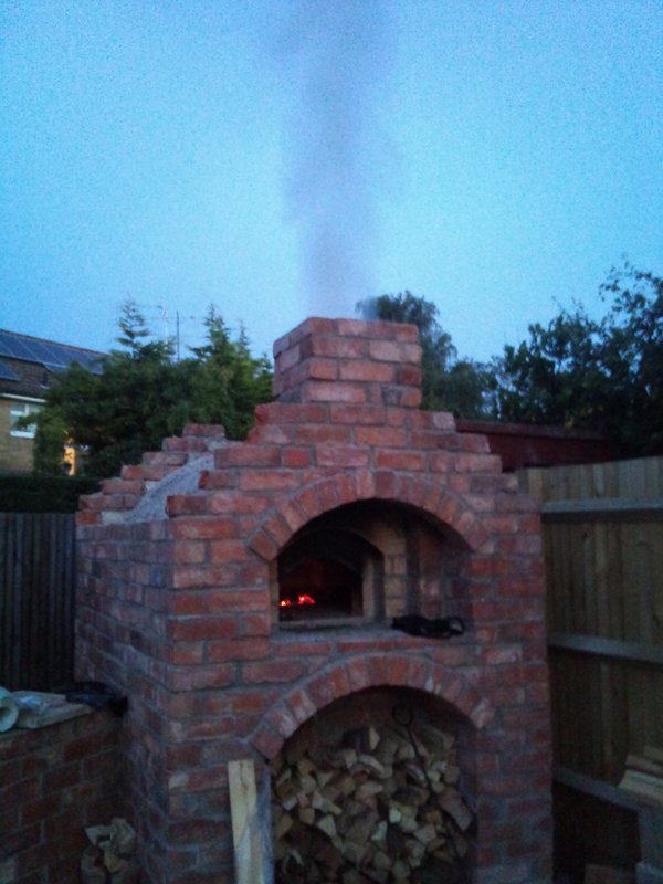 My brick oven, built with 100+ year old bricks. Not the finest brick work - I'd never laid a brick before in my life before starting and It's not yet finished, a few things need finishing off, the roof (will be natural slate tiles) which I'm doing this weekend, cutting the roof line so it's a straight line (rather than jagged, uneven bricks and a entrance slab to level the entrance off with the floor of the oven. I'm also building a 2 inch thick Oak door tomorrow to use when the fire has gone out to retain the heat.