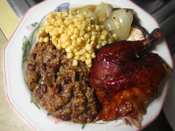 Dinner that night, Dirty Rice, White Corn, Onion and Chicken, eat your heart out KFC!!!