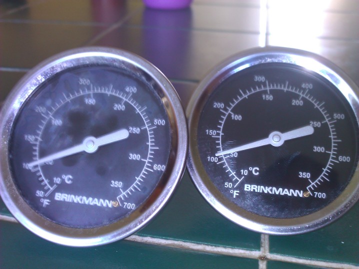 I boughta Brinkmann grill that I'm hoping to use for smoking and it came with 2 thermometers built into the hood. Reading online someone suggested the thermometers are often inacurate and should be calibrated, so I followed the instructions to boil a pan of water and dip the ends of the thermometer in.