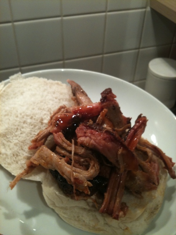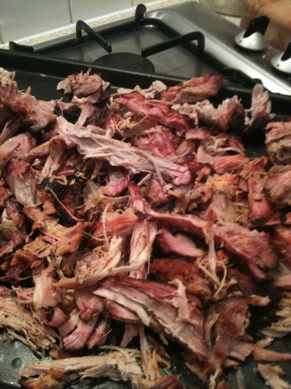 My 6 Pound Pork butt went on at 9.30 and was done by 9.00pm - I think the low temps and my need to mess with the fire slowed this up a bit. I let the pork reach 190 internal then let stand for an hour in foil.