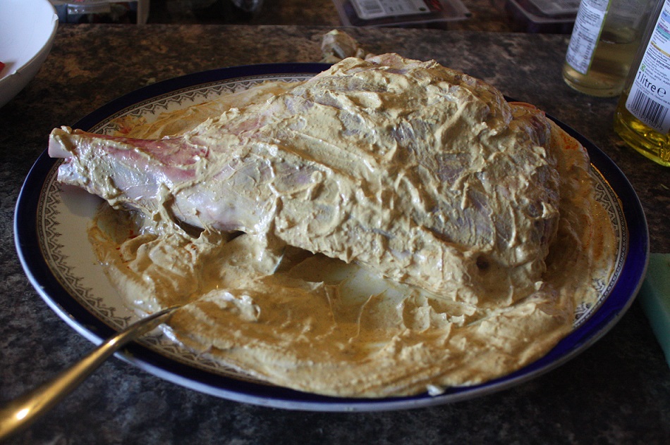 mix all together and rub into leg of lamb , and leave for a few hours , the excess can be rubbed on lamb while cooking