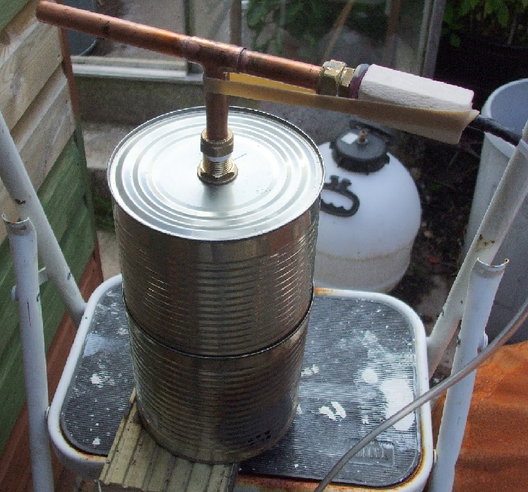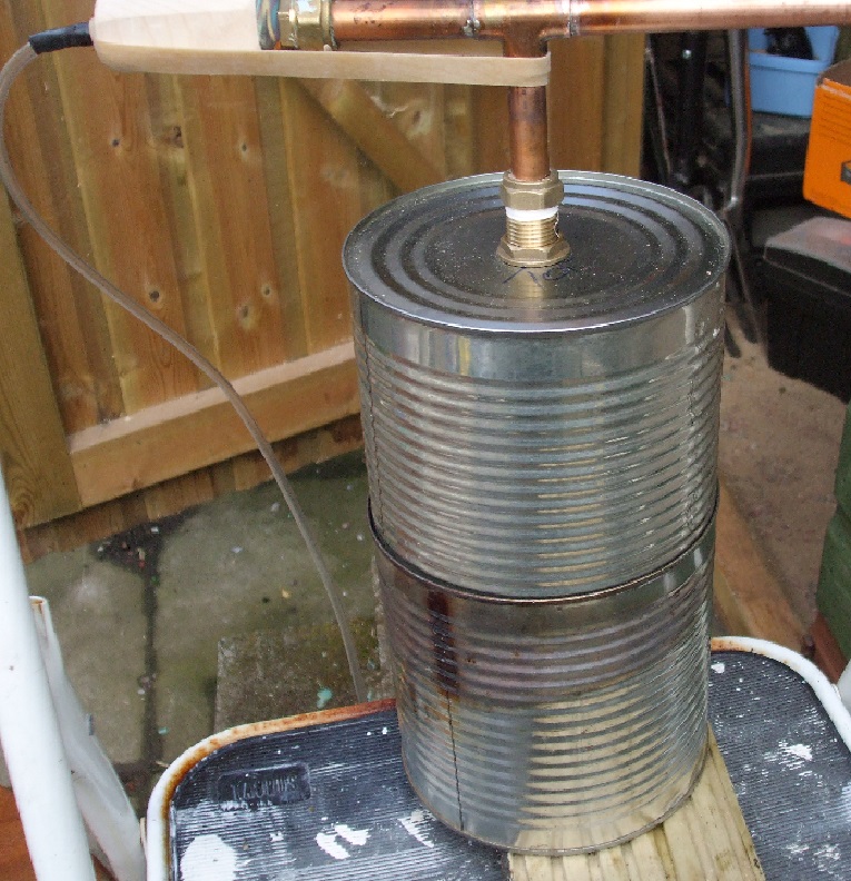 The son got me two A10 'food' tins, luckily one had a slightly smaller diameter than the other and fitted together nicely. I drilled several 'air' holes in the bottom of the lower tin.